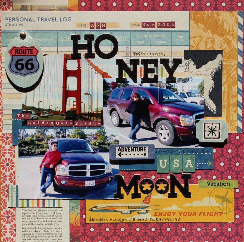 黒のカットしたペーパーにはアメリカの地名も載っていたので、レンタカーを借りてロス、サンフランシスコ、モントレー。。。新婚旅行した写真にピッタリだなと思って、とーーーっても恥ずかしいけど、素敵な思い出だし~、と自分に言い聞かせて思ってクロップしました(^^ゞ