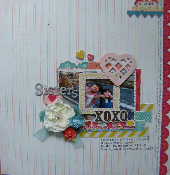 これまた、懐かしいK&COMPANYのペーパーとPrimaのフラワーを使いました。