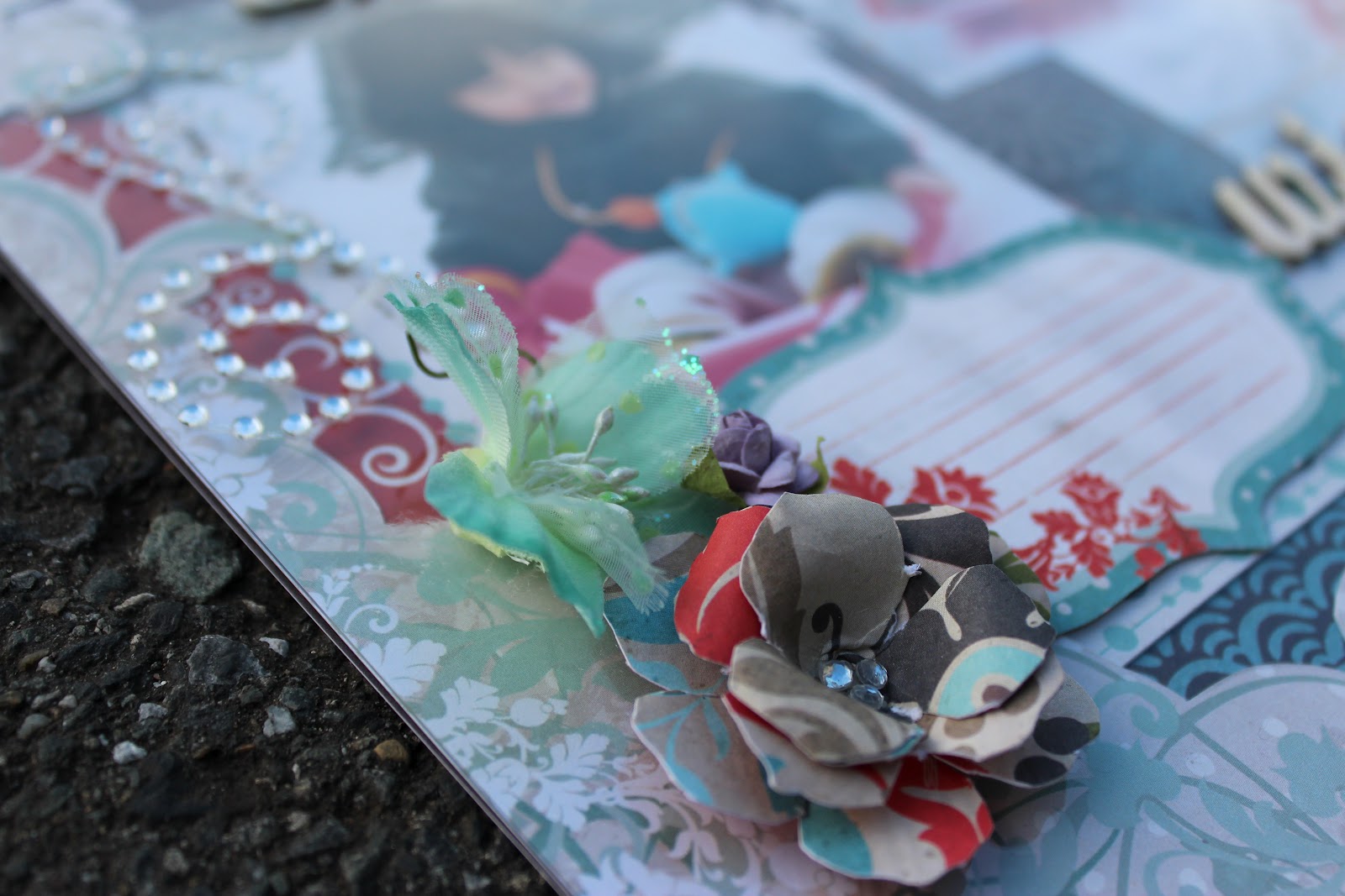 1つ目で使ったキットの余りと持ってるアイテムを使っての宿題。作品下のMARTHA STEWARTのクラフトとピンクのRUFFLE PAPERは持ってるものを足しました。